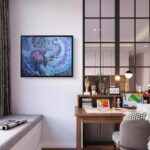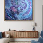 Pikturë mozaik e realizuar me efekt 3D, që krijon thellësi dhe teksturë të pasur vizuale. Elefanti, si simbol i urtësisë, forcës, stabilitetit dhe mbrojtjes, sjell energji pozitive dhe harmoni në ambient. Paleta elegante e ngjyrave dhe kompozimi i balancuar e bëjnë veprën ideale për shtëpi dhe interiere moderne. Vepra ka qenë pjesë e ekspozitave ndërkombëtare në Vjenë dhe Milano, duke reflektuar vlerën e saj artistike në skenën bashkëkohore.