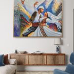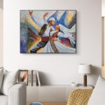Pikturë origjinale e realizuar në pëlhurë me ngjyra akrilike, e punuar me tri teknika të kombinuara: shpakull, brush dhe efekt 3D. Kompozimi transmeton lëvizje, harmoni dhe elegancë përmes teksturave të pasura dhe një palete ngjyrash dinamike. Vepra është prezantuar në ekspozita ndërkombëtare në Vjenë dhe Milano, duke reflektuar stilin tradicional–modern dhe vlerën e saj artistike në skenën bashkëkohore. E përshtatshme për ambiente elegante dhe hapësira moderne.