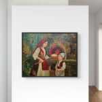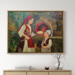 Pikturë origjinale që paraqet gruan me veshje tradicionale shqiptare duke i bërë bukë djalit të saj, një skenë e ngrohtë që simbolizon dashurinë, përkushtimin dhe sakrificën e nënës. Nëna shfaqet si shtylla e familjes, kujdestare e traditës dhe jetës, duke u kujdesur për fëmijët e saj, gjithmonë pranë tyre me dashuri dhe përkushtim. Kompozimi transmeton ndjenjë sigurie, afërsie dhe trashëgimie shpirtërore brez pas brezi. Akrilik mbi telajo • shpakull (spatula) • brush • efekt 3D